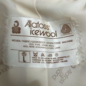 This is a beautiful Alafoss of Iceland Sz 12-14 Long Wool Coat. Super soft seater like wool, very cozy! Excellent condition. There is no size tag, but fits a 12-14. Can be worn open or closed with adjustable rings and strap closure. Large and deep flap pockets. Drop shoulder. Tall and deep neck collar. Fully logo lined satin.