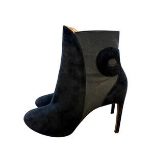 Alaia 39 Luxury $1200 Suede Pull On Circle Ankle Boots Stiletto Heel Black Sexy