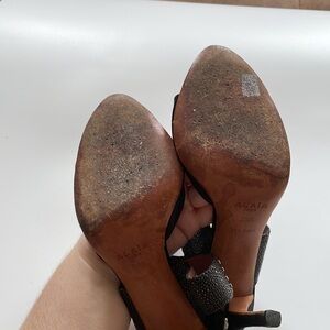 Alaia Black Cut Out Ankle Closure Open Toe Stiletto Heels
