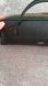 Sleek black leather handbag. Elegant design with top handle. Features subtle branding.
