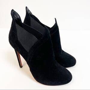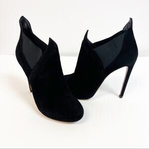 Women's Alaia Black Suede Leather Ankle Booties Heels Size 37.5 Almond Toe