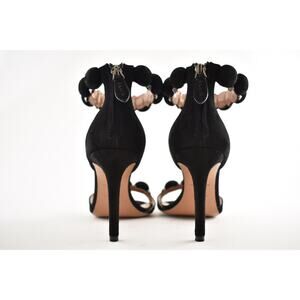 Alaia Bombe 90mm Black Suede Studded Pom Pom Ankle Strap Sandal Heel Pump 37