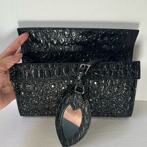 Alaia Crocodile Embossed Studded Leather Pochette Clutch Bag