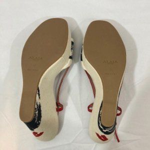 Alaia Wedge Heel Sandal, Red/White/Blue, Red patent leather strap, Excellent condition, Sole without wear Size 40. Research size for yourself EU conversion chart US 9.5. Get a Big jump for summer or wear them now! Heel height 5"