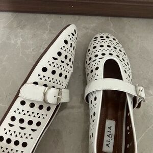Chic white flats with unique perforated design. Stylish and comfortable for any occasion.