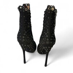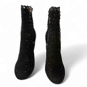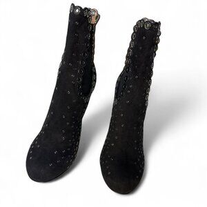 Alaia Women's Grommet Embellished Black Suede Mid Ankle Booties Size EU 37 NWOT