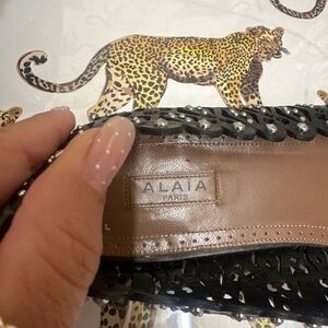 Amazing ALAIA black laser cut flats. Some wear to sole but only wore once bc too big for me. I love these! Hope they go to a good home. Size 39