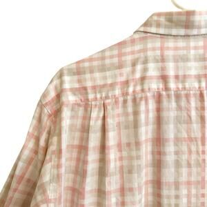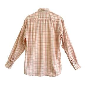 Alain Figeret Double Retors Button Down Check Shirt Pink Taupe White Sz 40 15 3/4