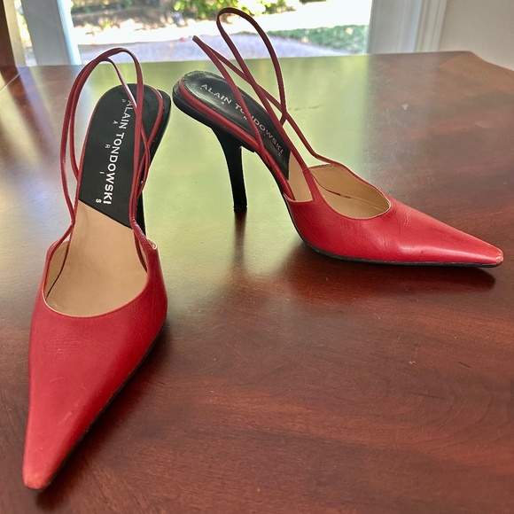 Alain Tondowski Paris Red Pointed Toe Sling Back Heels Size US 9