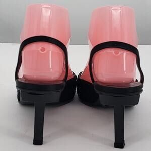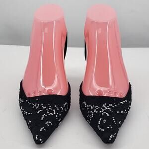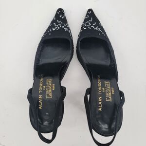 Alain Tondowski Size 6.5 Sequin Slingback Kitten Heels Pointed Toe Black Shoes