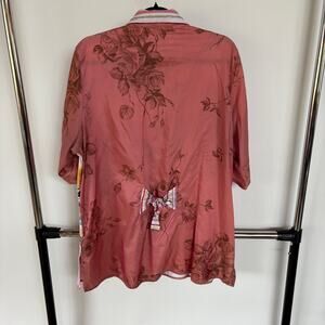 Gorgeous bright and colorful button down collared shirt with tie details at sleeves and back