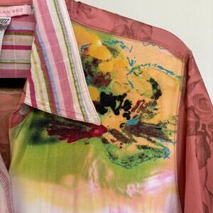 Alain Weiz Maximalist Top Colorful Art To Wear Hippie Button Down Euro Size 20
