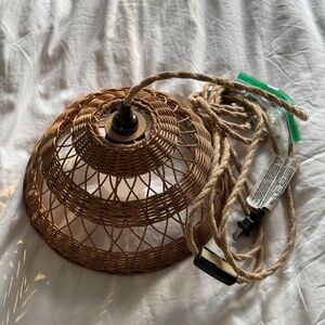 12 in. Plug in Rattan Wicker Pendant Light with 15 ft. Cord