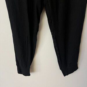 Alala Heron Black Ankle Joggers- Women's Size Medium. Black, lightweight soft rayon/spandex blend, elastic waist, mesh detail at calves. In good condition.