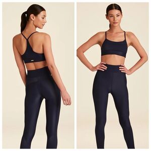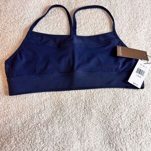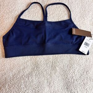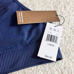 Alala Raya Rib Bra Womens Size Large Navy Blue Textured Shiny Ripped Fabric New