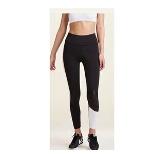 These Alala athletic leggings in size M feature a black and white color scheme with an ankle style. They are designed for a regular fit and have a pull-on closure. The leggings are suitable for activewear and have a compression area on the legs. The inseam length is 26 inches, making them ideal for women engaged in various physical activities.