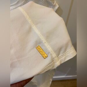 Front and Lower back or soft white sweat wicking solid fabric similar to lululemon Nulu or everlux