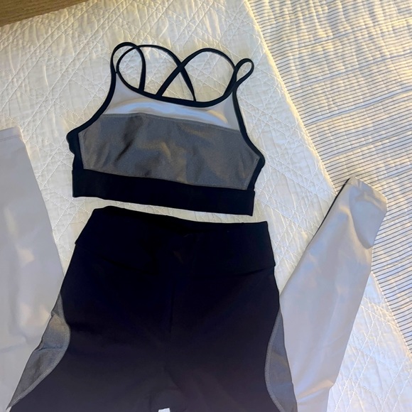 Black, grey and white Alala set. I have loved this set but it’s too big for me. Size small, in amazing pre-owned condition. Pants are high rise, not too compressive. Both pieces are a small. Bra does not have cups