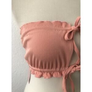 Alamae Campari Ribbed Ruffled Bandeau Bikini Top Swimwear