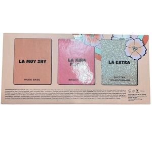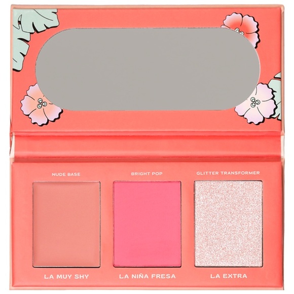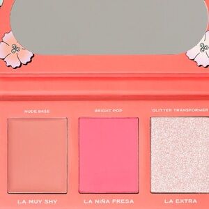 • La Niña Fresca – Bright pop powder blush. Layer over the cream base for buildable color and heat.