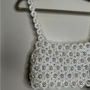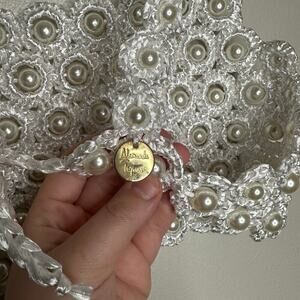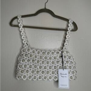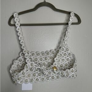 Alameda Turquesa Hana Pearl Embellished Crochet Crop Top White O/S NWT $432