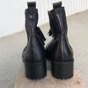 These boots are in new like condition, check out the pictures. Inside left as a small mark it could be polished out. Heel height is 2 inches, shaft Height is 5.5 shaft width is 3.5 with elastic stretch. Soles are like new.