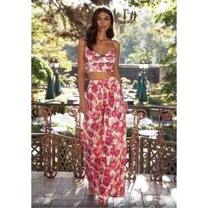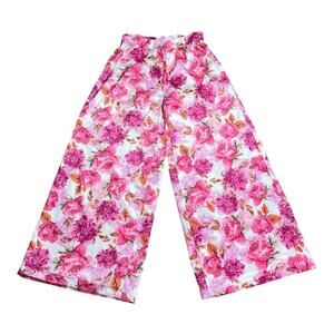 Alamour Satin Floral Wide Leg Pull On Pants XXS