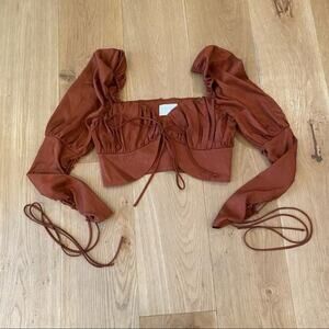 Alamour The Label Rafael Lace Up Sleeve Crop Top in Rust Size XS