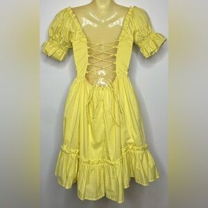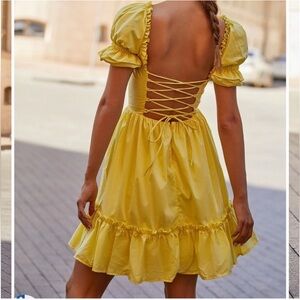 Alamour The Label Yellow Sundress with Puff Sleeves and Sweetheart Neckline