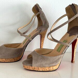 Alan Chan Couture Suede Cork Platform Heels – Size 6.5