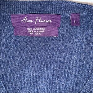 Alan Flusser 100% Cashmere Blue Argyle V-neck Sweater Men's Size L EUC