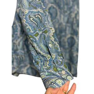 Alan Flusser Blue Green Paisley Button Up Shirt XL Casual Party Preppy Colorful