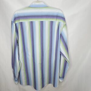 Alan Flusser Blue Striped Long Sleeve Button Front Men's Shirt Size XL Cotton