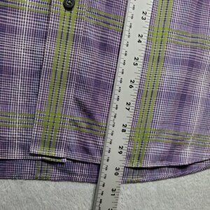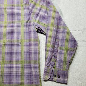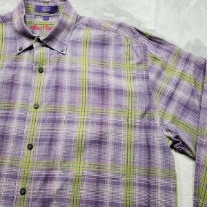 Alan Flusser Button Down Long Sleeve Plaid Shirt Purple White Brown Mn Sz L