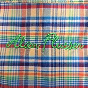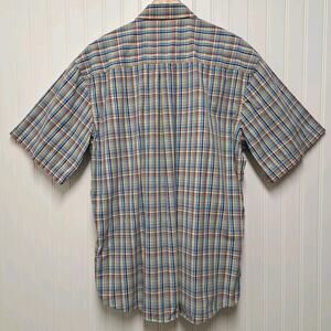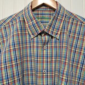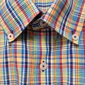 Alan Flusser Button Down Shirt Mens XL Rainbow Plaid Cotton Short Sleeve Casual