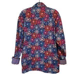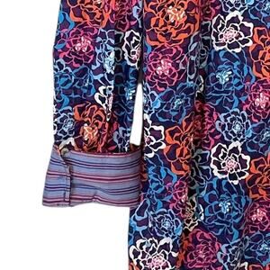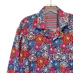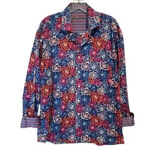 Alan Flusser Floral Shirt Flip Cuffs Womens Large Red Blue Multicolor Career
