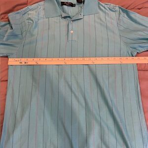 Alan Flusser Golf 100% Cotton Polor Aqua with Multicolor Pinstripes Size Medium