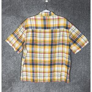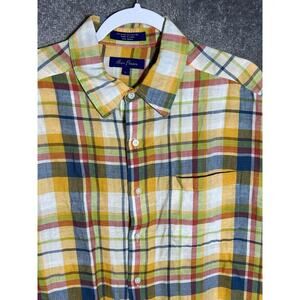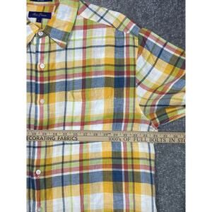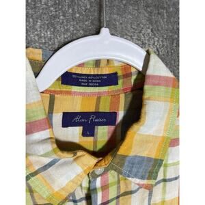 Alan Flusser Linen Blend Shirt Mens Size Large Plaid Short Sleeve Button Up