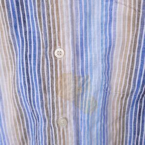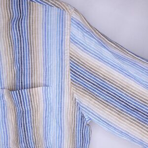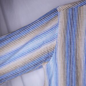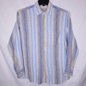 Alan Flusser Linen Shirt Mens Medium Striped Blue, Brown