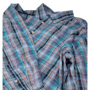Alan Flusser Long Sleeve Button Down Shirt Blue Red Plaid Men's Size 2XL, XXL