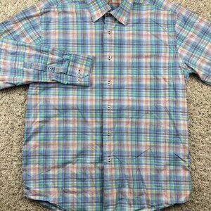 Alan Flusser Long Sleeve Rainbow Multicolor Shirt Small Button Up Colorful Plaid