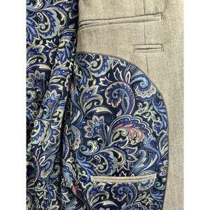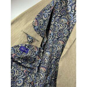Alan Flusser Men's Blazer Size XL Paisley Lined Tan 100% Cotton Two Button