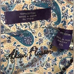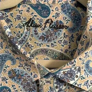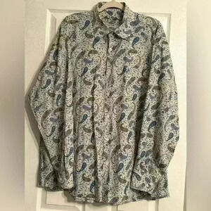 Alan Flusser Men's Button Down Long Sleeve Large Paisley Design Blue Size XXL
