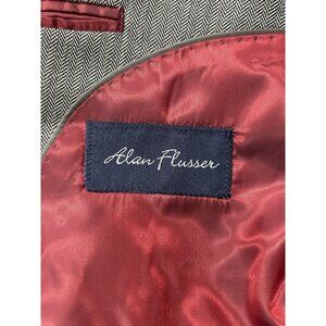 Alan Flusser Mens Gray Herringbone Blazer Jacket 44R Silk Worsted Wool Blend