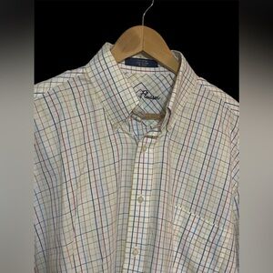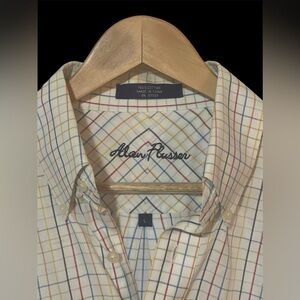 Alan Flusser Mens Large Button Down Long Sleeve Shirt White Rainbow Plaid Cotton