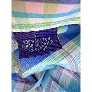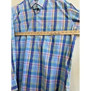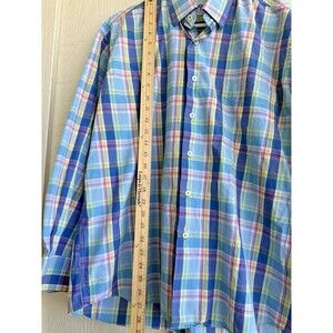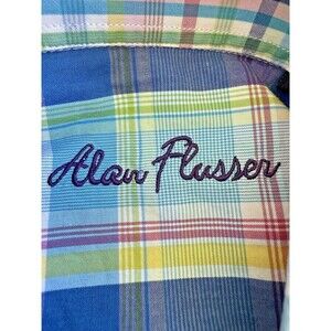 Alan Flusser Mens Large Multi Color Plaid Dress Shirt Button Down Long Sleeves