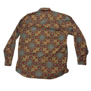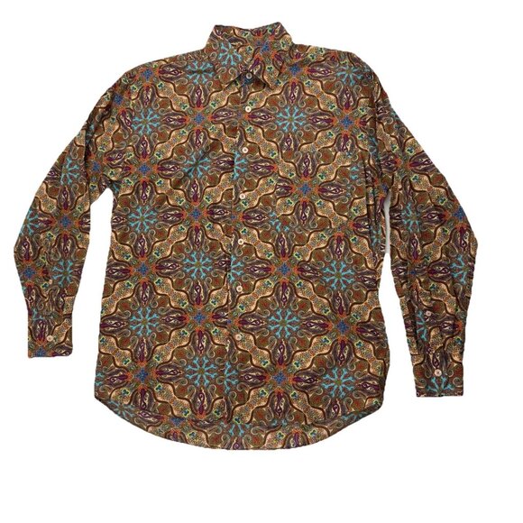 Alan Flusser Mens M Brown Paisley Long Sleeve Button Down Dress Shirt