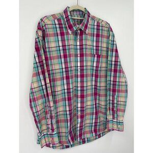 Alan Flusser Mens Plaid Button Down Long Cotton Sleeve Shirt Pink Green Large
