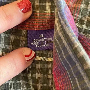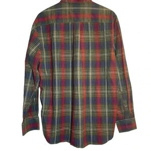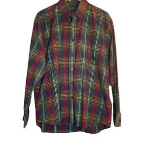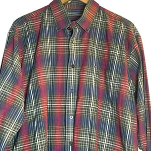Alan Flusser Men’s Red Green Navy Plaid Button Down Shirt XL Holiday Office