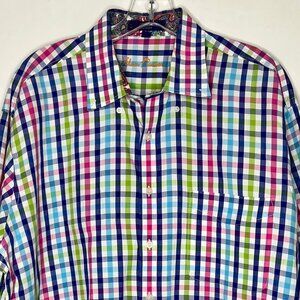 Alan Flusser Men's Shirt XL Long Sleeve Button Down Colorful Stripe Plaid